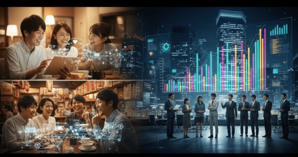 これらを総合すると、日本人は「相手の気持ちを察し、その場の空気に合わせながら、理想を追い求める」という、非常に繊細なバランスの上で生きていることが分かりますね。まさに「察する文化」が統計として表れているようです。
