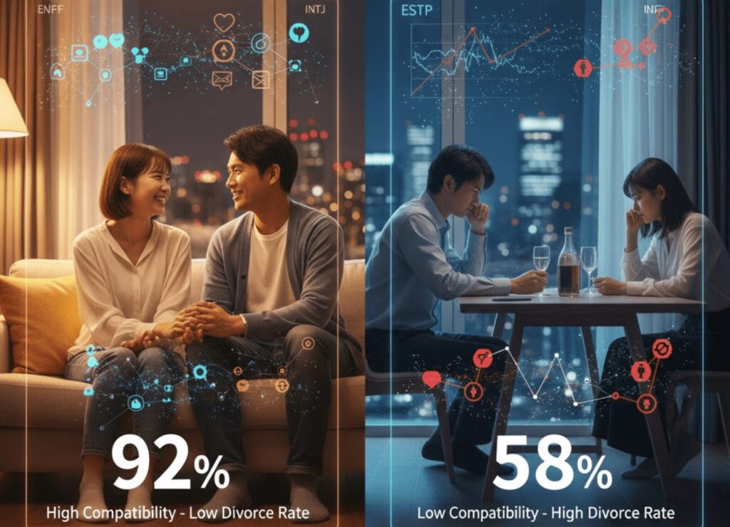 反対に、あまりに価値観が違う(例:効率至上のESTPと、情緒を重んじるINFPなど)と、日常の些細なことで衝突が増え、離婚率が高まるというデータもあるんです。